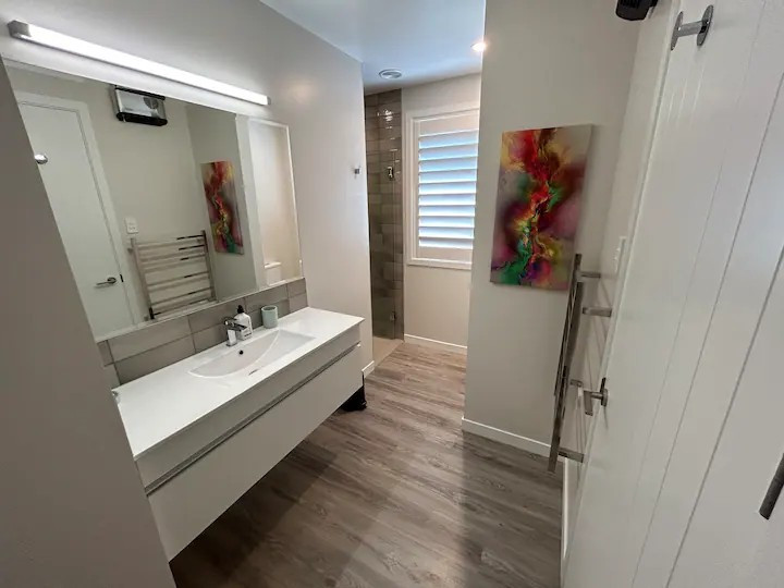 4 large bedrooms, 2 with ensuite’s (room 2 and 3 share the bathroom). Beautiful views of the Mount Hutt and the Southern Alps. TV in Lounge and in Room 3 and 4. Spacious and luxurious with a warm inviting vibe. The outdoor bath is a highlight